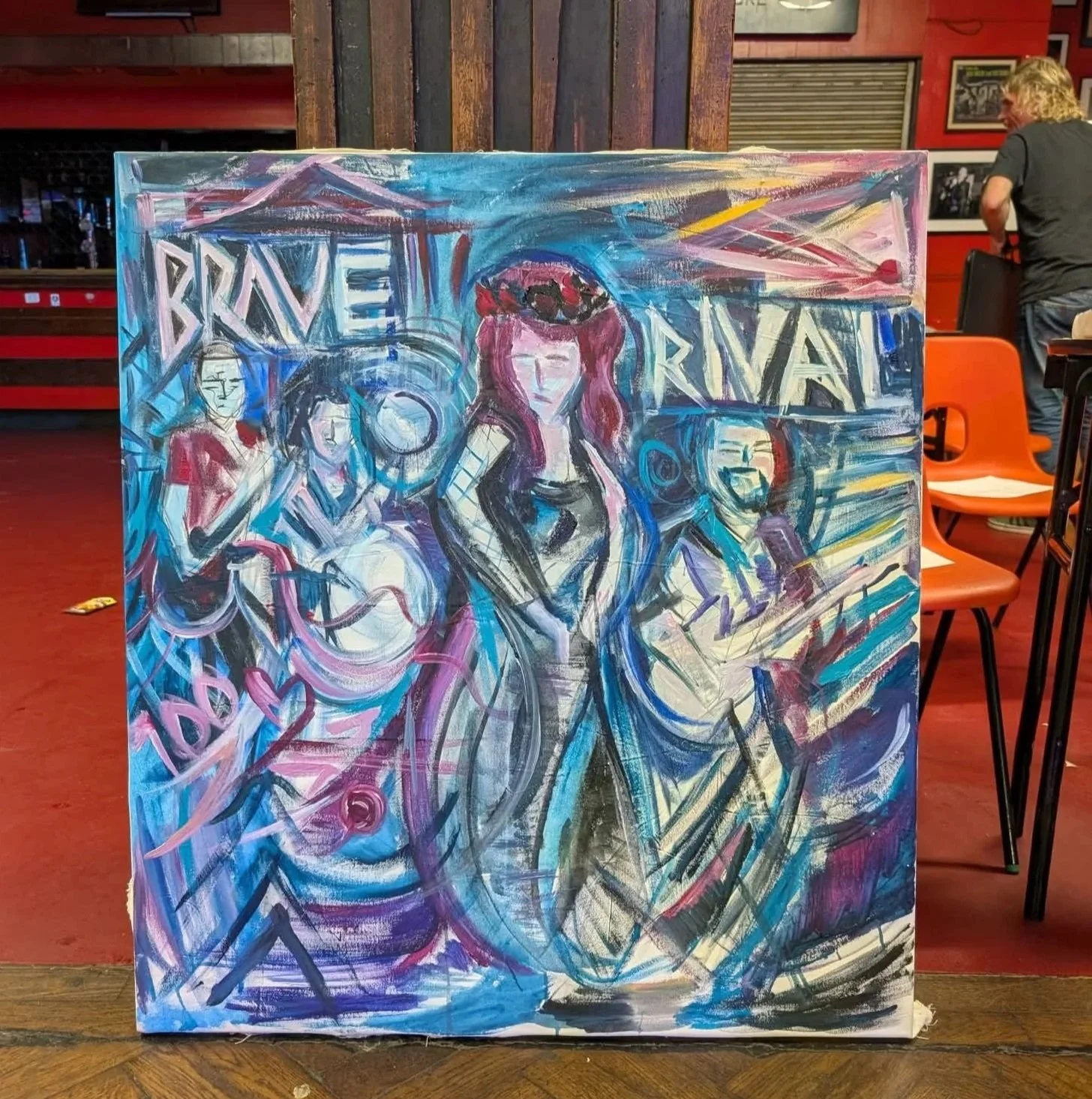 It was a dream come true for me to be creating on the spot responsive art works to Brave Rival and their Ep Launch held at the Iconic 100 Club, located on Oxford Street in London. I was on the guest list and invited there by the band, who have become steadfast friends over the past few years. Demi Mariner was also there and was the opening support act. The 100 Club has had so many prestigious musicians over the years including The Who, The Kinks, Muddy Waters, the Sex Pistols, The Clash, Blur and many more!